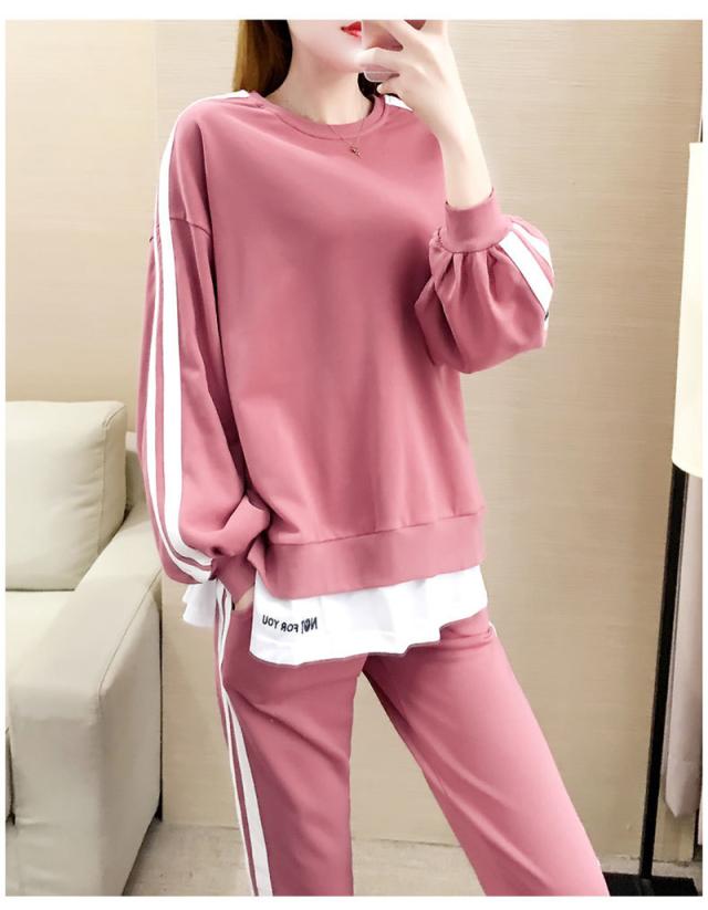 ジャージ レディース 上下セット スウェット 長袖 パーカー 長ズボン 春秋 2点セット 重ね着風 ゆったり 運動服 スポーツウェ