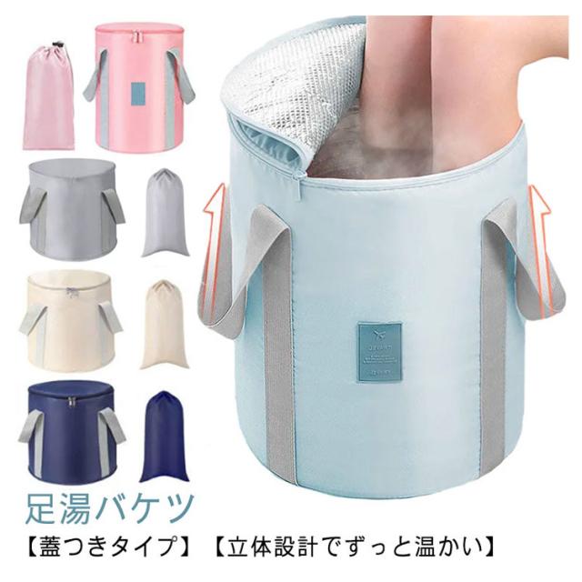 蓋つき 足湯 バケツ 折りたたみ フットバス 保温 ふくらはぎ 折り畳み 足湯バッグ 足 脚 コンパクト ディープバケット 簡易バケツ 折り畳み式 出張 旅行洗濯 軽量 持ち運び 釣り 洗車 キャンプ アウトドア 公園 防災 入院 洗濯