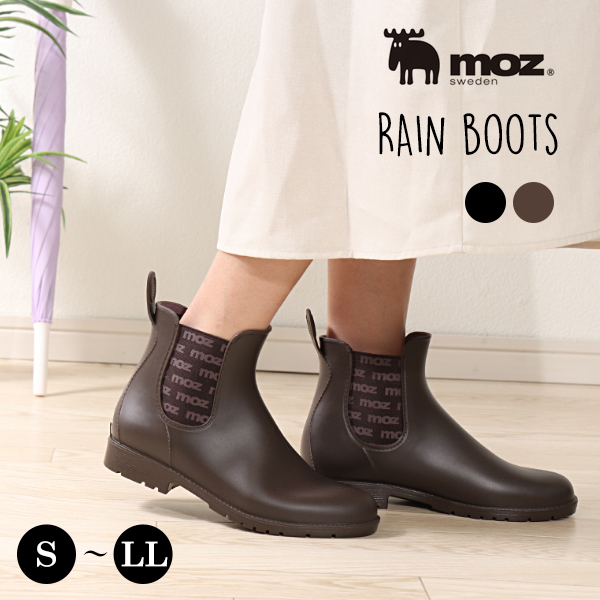モズ moz レディース レインブーツ ショート 丈 長靴 サイドゴア ロゴ プリント おしゃれ ブランド かわいい
