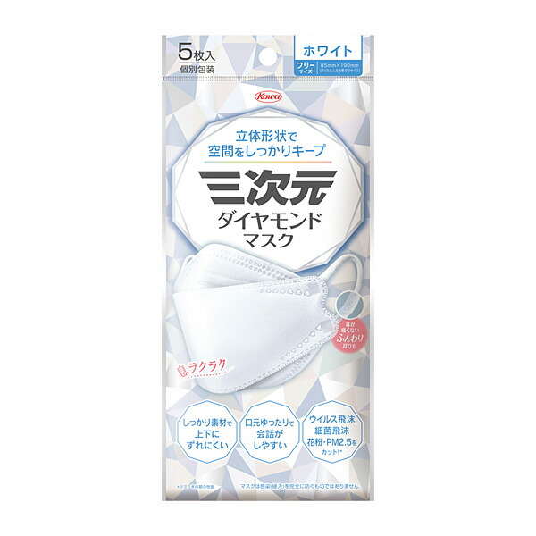 三次元ダイヤモンドマスク フリーサイズ ホワイト 5枚