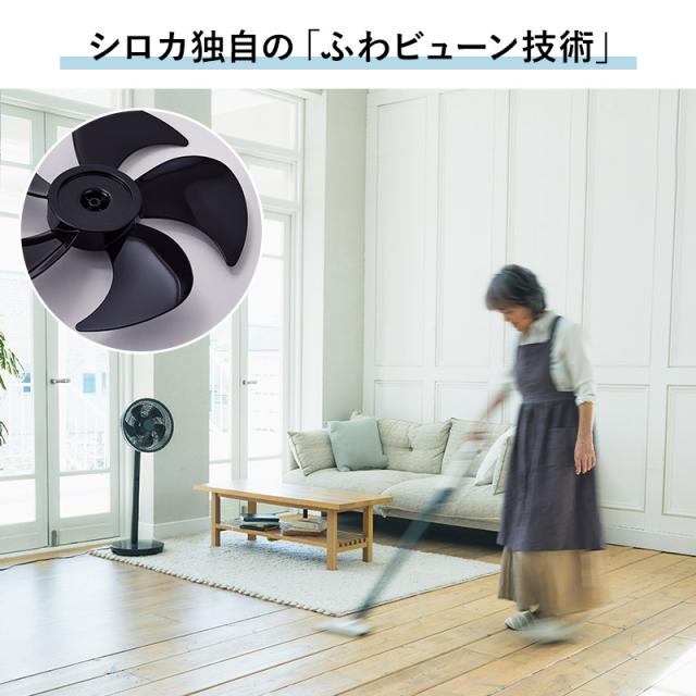 羽根の薄さや角度をはじめ、ガードの素材や形状、モーターの回転数や寿命などを細部にわたって追究したシロカ独自の「ふわビューン技術」を搭載。心地よく眠れる静かでやさしい風から、室内の換気や洗濯物乾燥に最適なパワフルな風まで、性質の異なる2つの風を1台で提供します。冷暖房の効率アップ、就寝時の涼取り、室内換気、部屋干し乾燥など、幅広いシーンでお使いいただけます。
