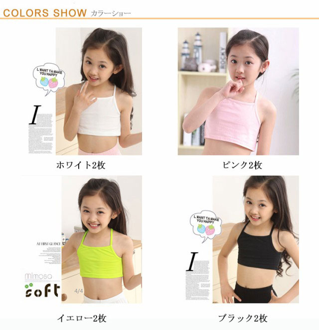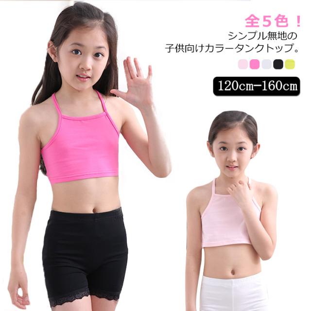 子供 無地 キッズ 送料無料 小学生 タンクトップ キッズキャミソール キャミソール スポーツインナー 女の子 シンプル チューブトップ アンダーウェア ブラトップ コットン 無地 ブラック/ホワイト/イエロー/ピンク/マゼンタ ジュニア ガールズ ハーフトップ