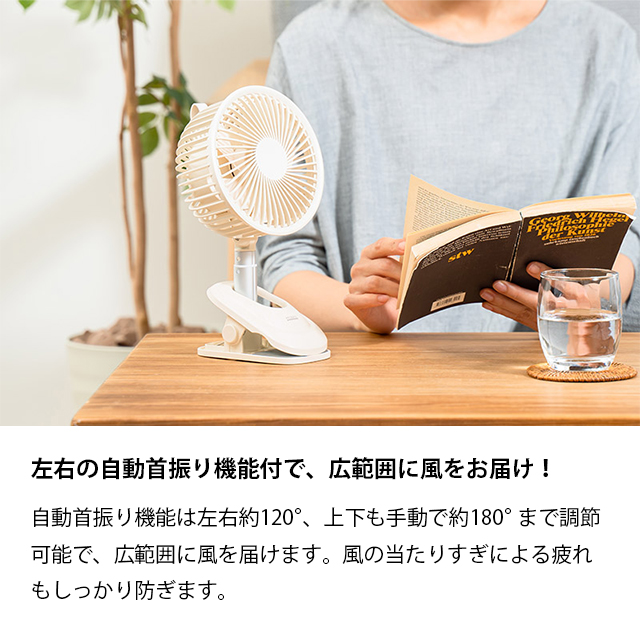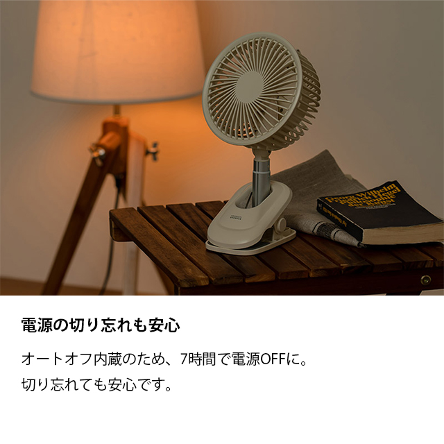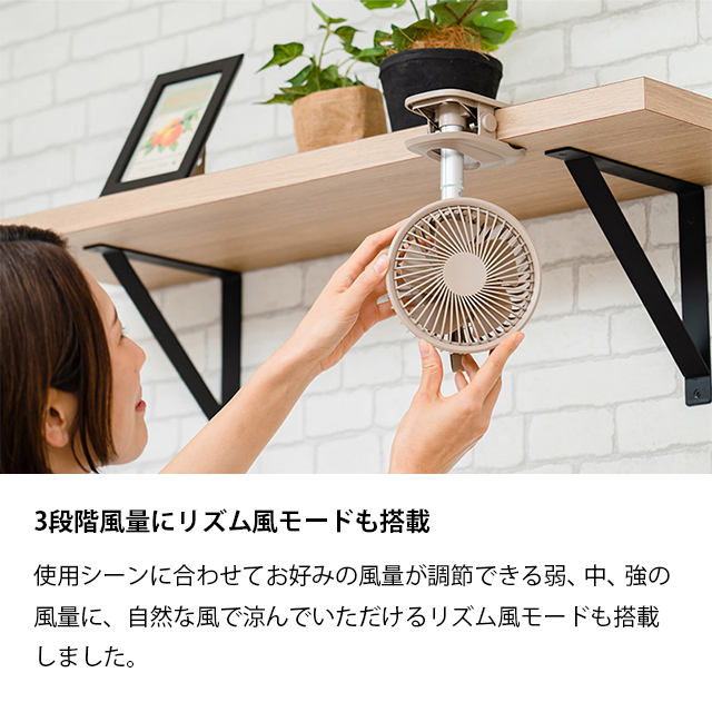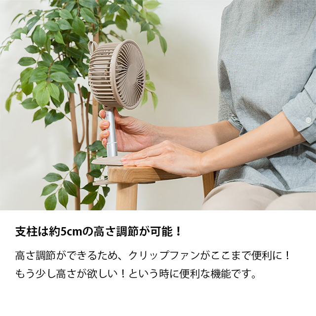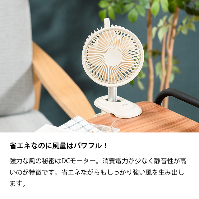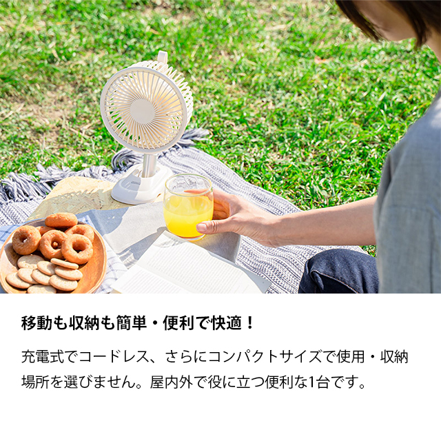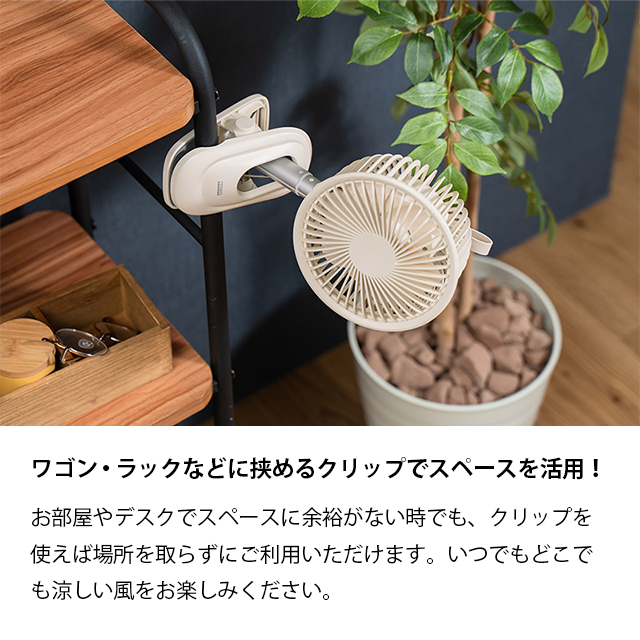 クリップで使いやすさアップ&使用シーン広がる!コードレスミニリビングファン |