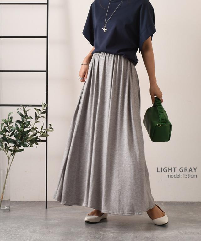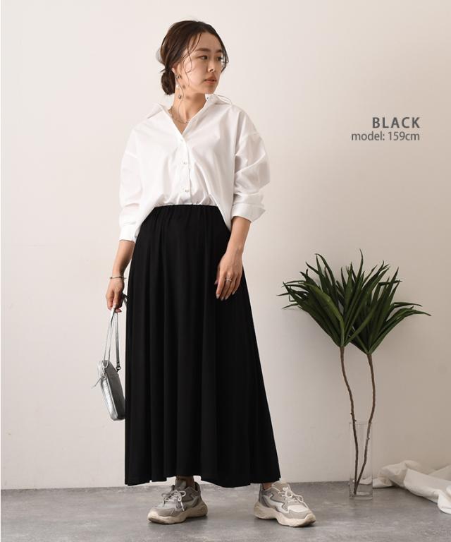 新作 ゆるてろボリュームロングフレアスカート レディース ボトムス 春 夏 おしゃれ ゆったり ウエストゴム 無地 シンプル お出かけ デイリー 着回し 体型カバー ベーシック ドレープ とろみ Aライン ロング丈