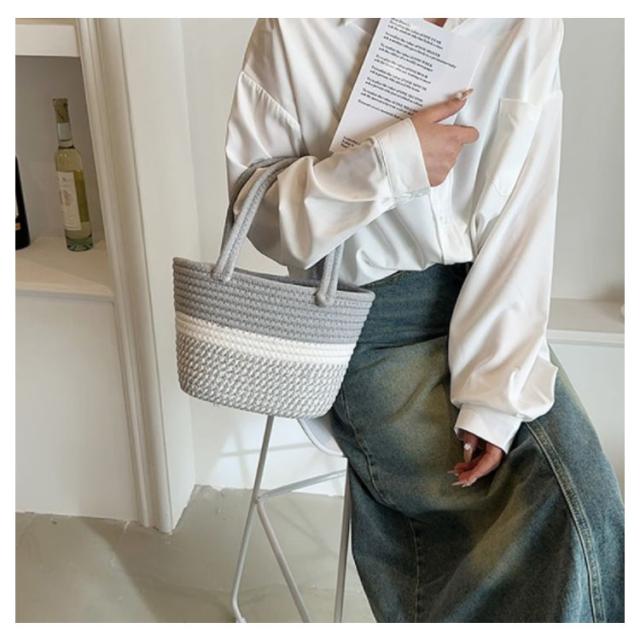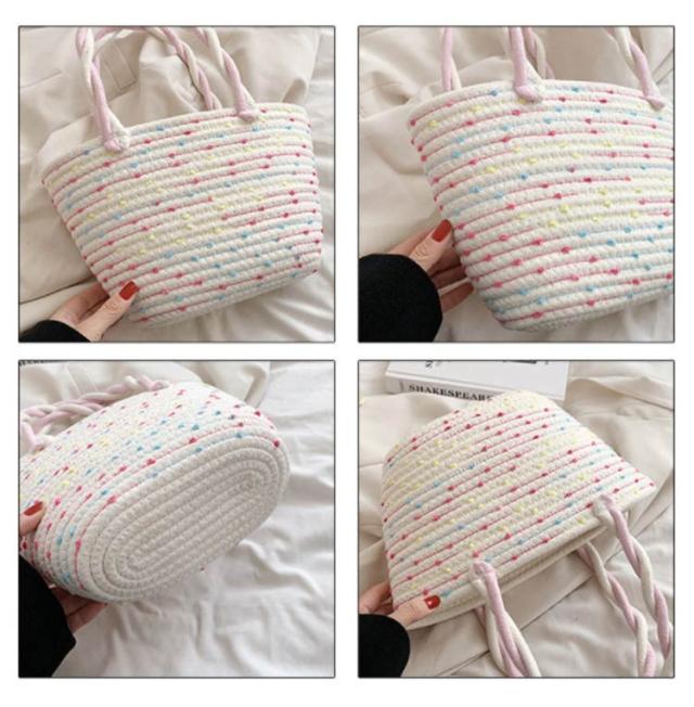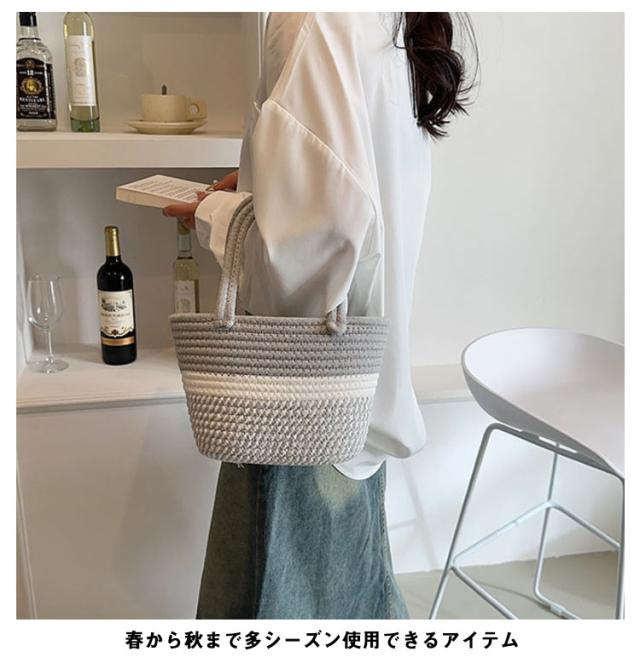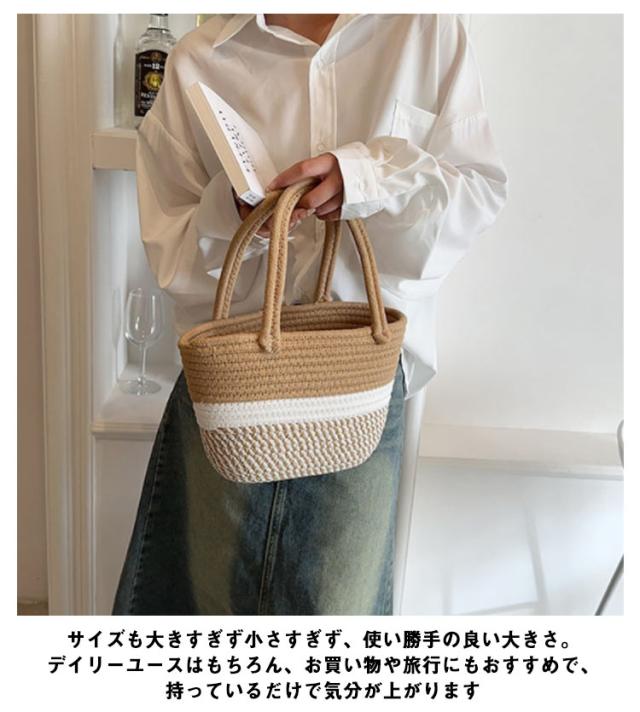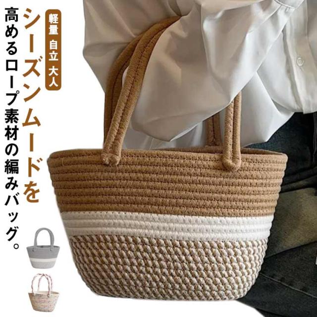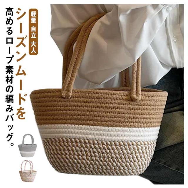 小さめ 自立 レディース ロープ 編みバッグ 鞄 トートバッグ 大容量 ロープ エコバッグ マチあり バッグ ハンドバッグ 手提げ おしゃれ お買い物 軽量 通勤 通学 カバン 大人 春 夏 カジュアル 編み バッグ シンプル ハンドバッグ 2023 トート