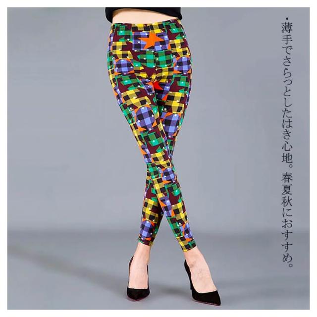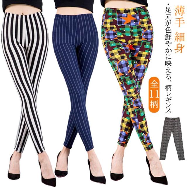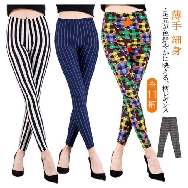 レギンス 柄レギンス ストライプ柄 レディース 総柄 10分丈 スリム ボトムス パンツ スパッツ ストレッチ レイヤード 重ね着 薄手 ルームウェア 細身 ロング ウェストゴム 楽ちん リラックス インナー 柄レギンス 冷房対策 お洒落 カジュアル 春 夏 伸縮