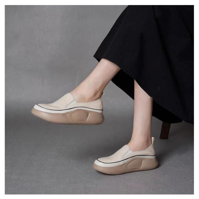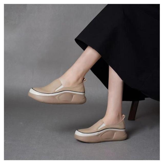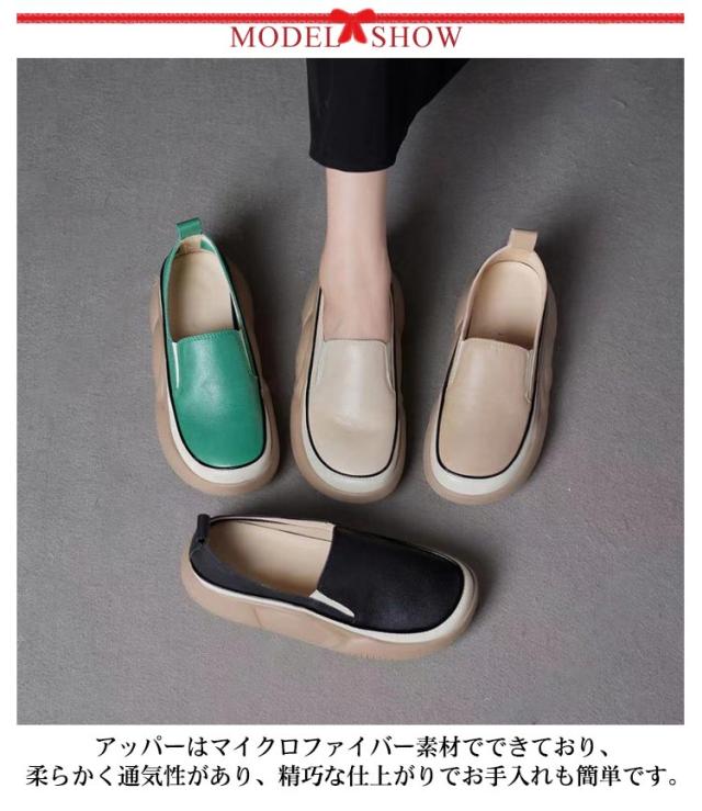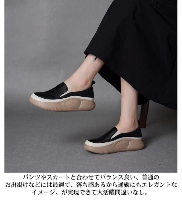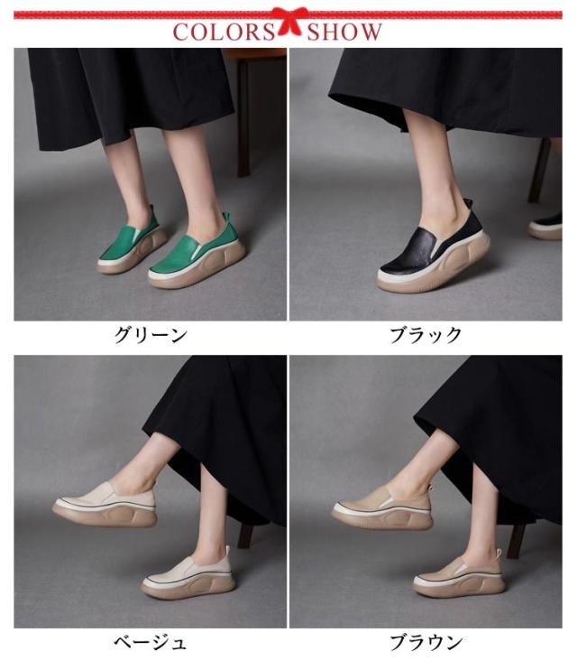 | 軽量で、足へ負担をかけないので、疲れにくい厚底スリッポンシューズ! アッパーはマイクロファイバー素材でできており、柔らかく通気性があり、精巧な仕上がりでお手入れも簡単です。 アウトソールには耐摩耗性に優れたゴムを使用し、滑りにくて耐磨耗性が抜群。 パンツやスカートと合わせてバランス良い、普通のお出掛けなどには最適で、落ち感あるから通勤にもエレガントなイメージ、が実現できて大活躍間違いなし。 人間工学に基づいたデザインで、外反母趾にやさしいワイドトゥデザイン。衝撃吸収で足が痛くならず、とても歩きやすいです。 | |