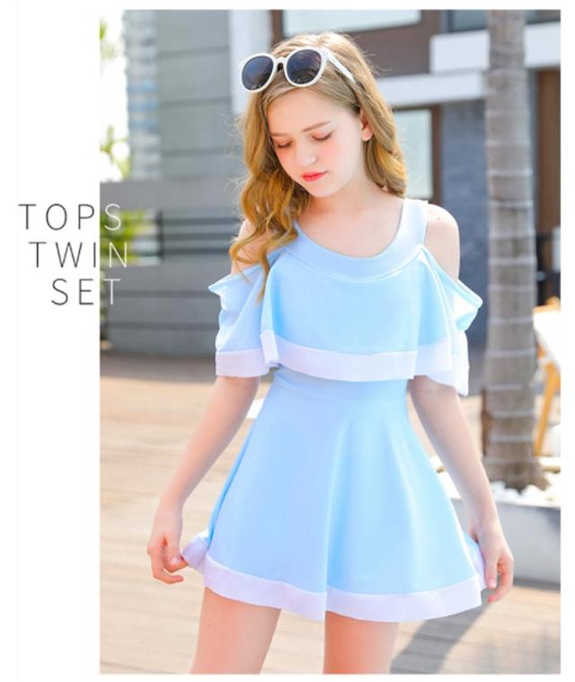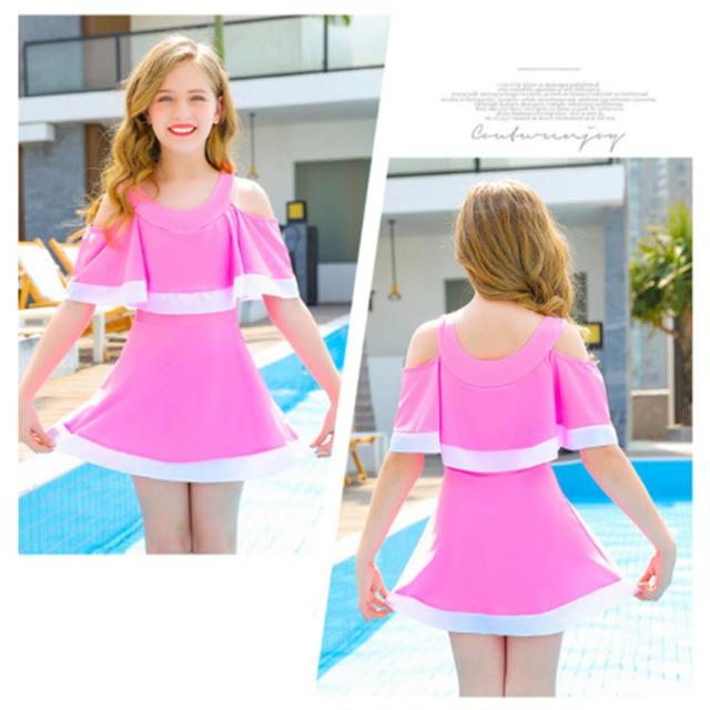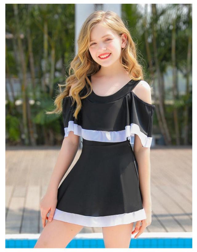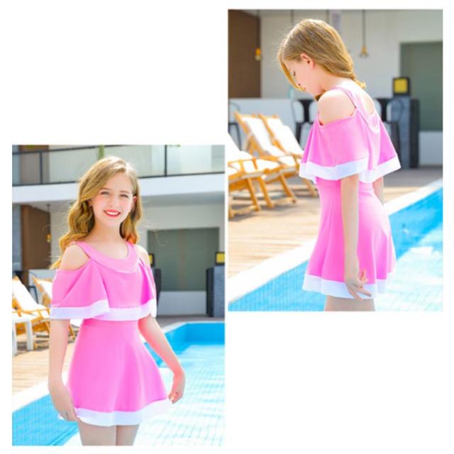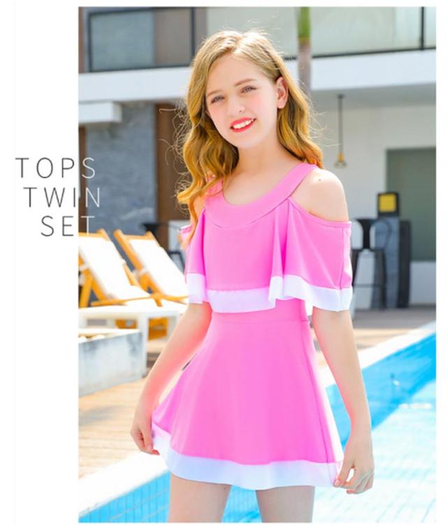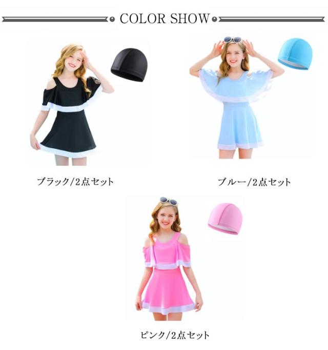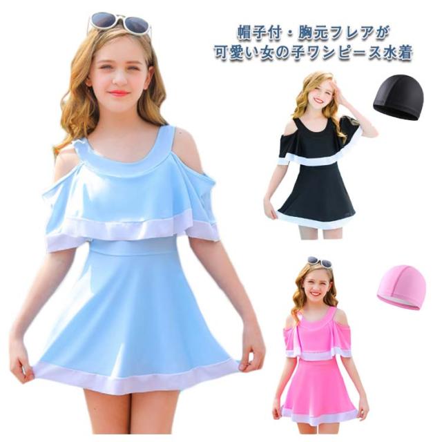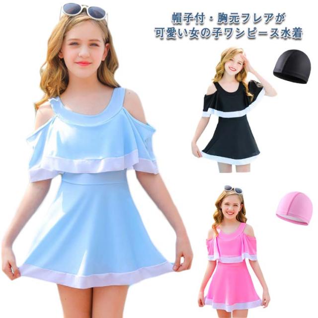2点セット ワンピース水着 シンプル 水着 子供 スイムウェア インナーパンツ一体型 Aライン 帽子付き ストレッチ 海 女の子 速乾 伸縮性 プール ビーチ リゾート 温泉 幼稚園 保育園 小学生 女の子 おしゃれ カジュアル バイカラー