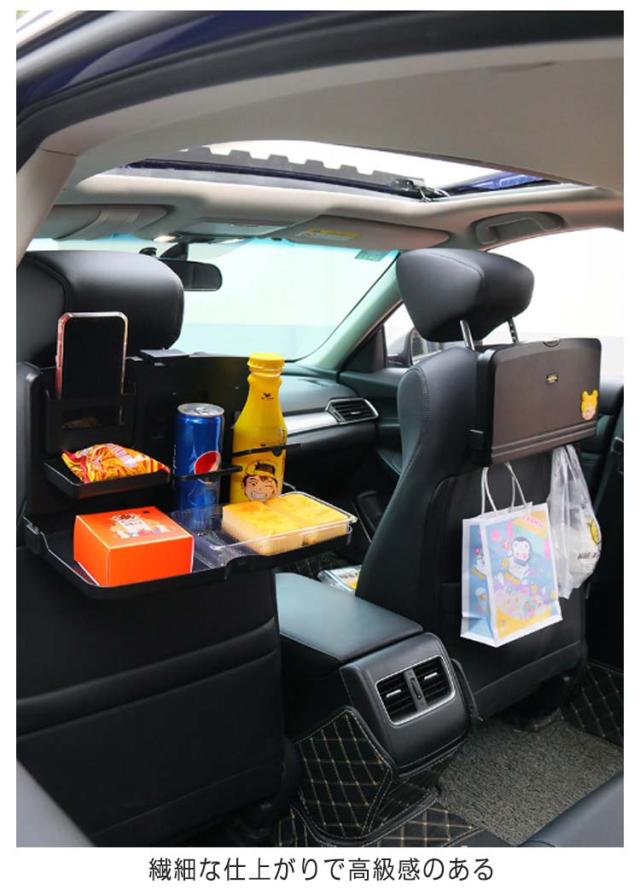 | 折りたたみ式テーブル 耐荷重性に優れた折り畳み式テーブルで PC作業や食事など様々な用途に使用でき、 座席の後ろを有効活用することができます。 優れた素材 繊細な仕上がりで高級感のある 素材で作られたヘッドレストテーブルは、 防水ができて清掃にも易いし 耐久性に優れ、変形にくいです。 | |