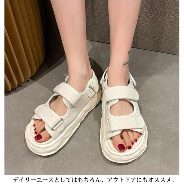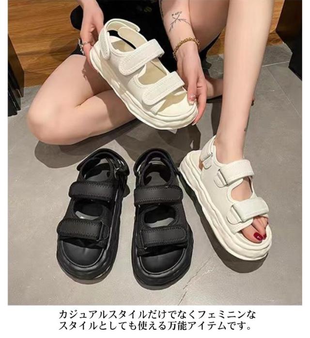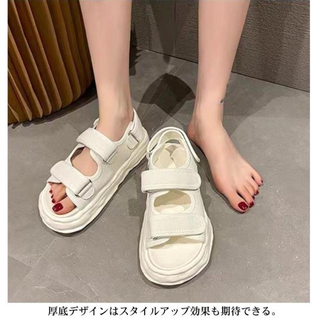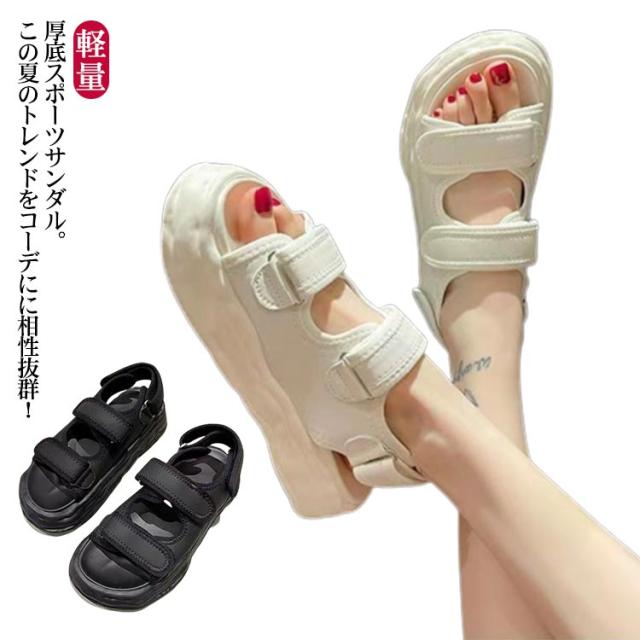| 厚底スポーツサンダル。この夏のトレンドをコーデにに相性抜群! もっちりクッションのインソールと軽量設計の厚底ソールなので安定感もあります。 厚底デザインはスタイルアップ効果も期待できる。 デイリーユースとしてはもちろん、アウトドアにもオススメ。 カジュアルスタイルだけでなくフェミニンなスタイルとしても使える万能アイテムです。 | |