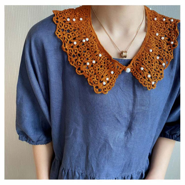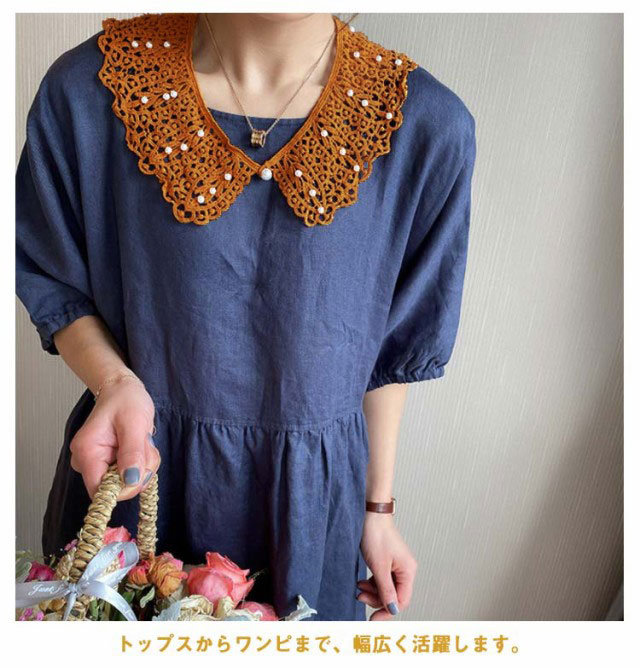 | ボタンで着脱のパール付きのレースの付け襟。 大きめの襟は華やかなアクセントになり、いつもと違ったコーデを楽しめます♪ ナチュラルコットン素材で、レトロムードもますます高まります。 丸襟のデザインも清楚で可愛さを演出してくれます。 トップスからワンピまで、幅広く活躍します。 | |