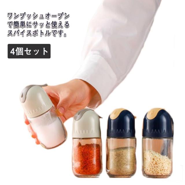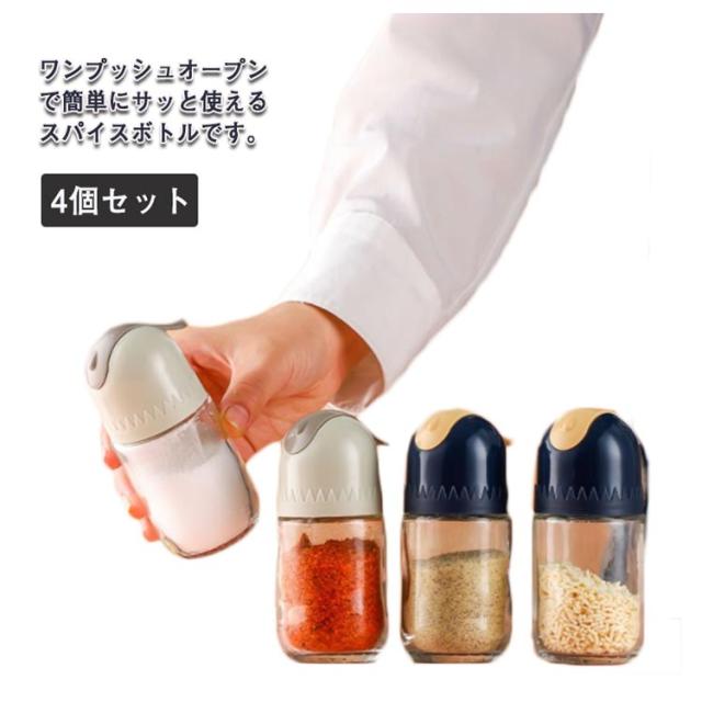 調味料容器 調味料ふり スパイス スパイスボトル ボトル ガラス瓶 4個セット ガラスボトル ガラス瓶 粉ふり ワンプッシュ式 穴あき 保存容器 スパイス 調味料ボトル スパイスケース スパイス入れ キッチン 調味料入れ