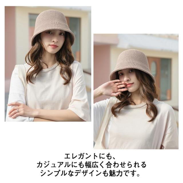 | 柔らかくて被り心地の良い、涼しげな春夏バケットハット。 ざっくり編みで通気性に優れ、爽やかな被り心地! しっかりと安定したシルエットで、サッと被れるのも魅力です。 広いつばで日差しが気になる季節に最適なバケットハットです。 エレガントにも、カジュアルにも幅広く合わせられるシンプルなデザインも魅力です。 | |