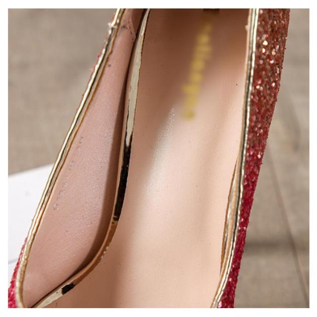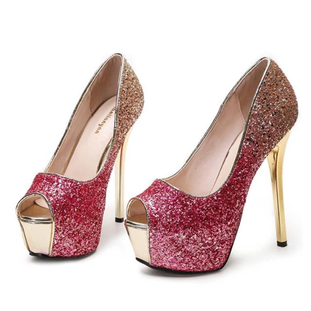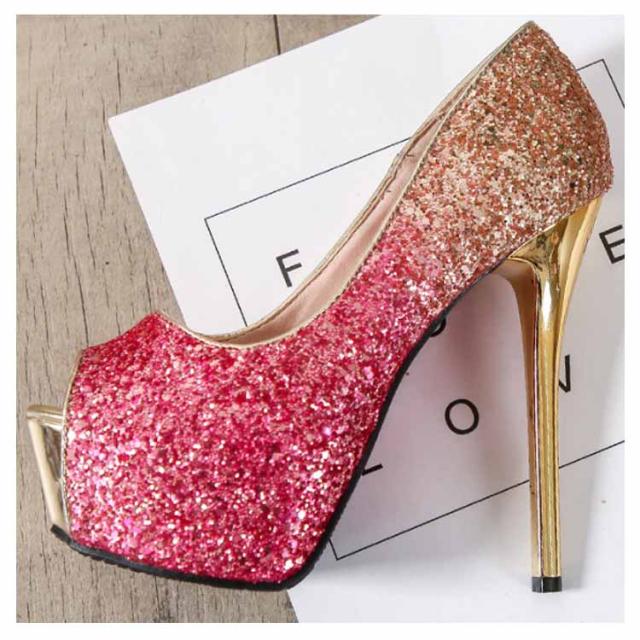 | ゴージャスなグラデーションオープントゥ厚底サンダルです。 キラキラのラメ素材でゴージャス度数200%! ドレスが映える一品です! 厚底&ハイヒールですので着用時はご注意下さいませ。背がとても高くなります。 | |