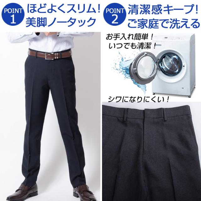 【キーワード】 メンズ パンツ 春夏 秋 クールビズ ロングシーズン スラックス 裾上げ済み すそ上げ済み すそ上げ加工済 裾上げ済 股下71 股下74 股下77 選べる股下 ノータック ズボン 紳士用 ウォッシャブル 洗濯機で洗える オフィス ビジネス ジャケパン クロ 黒 ブラック ネイビー 濃紺 紺 グレー チャコール