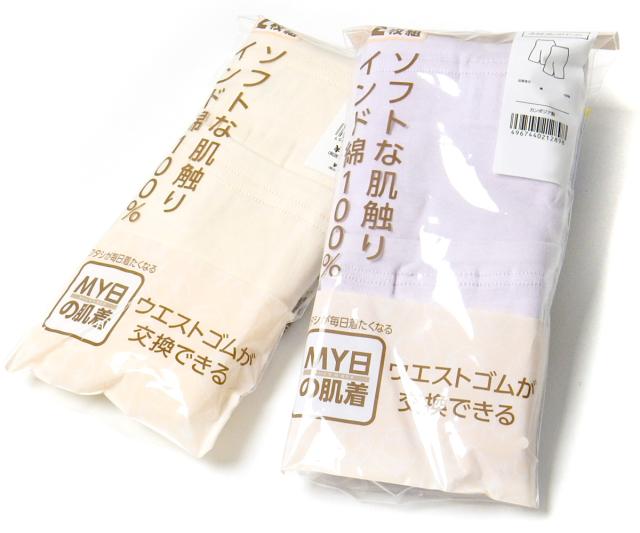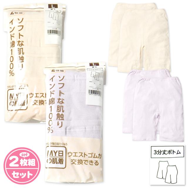 【送料無料】2枚組セット 婦人 レディース 3分丈 ボトム インナー 肌着 下着 インド綿100% ウエストゴム交換 yg-1864【メール便対応】
