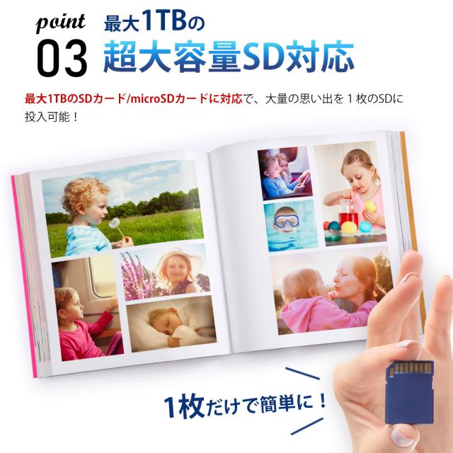 最大1TB対応で大量の思い出を1枚のSDカードに投入可能!