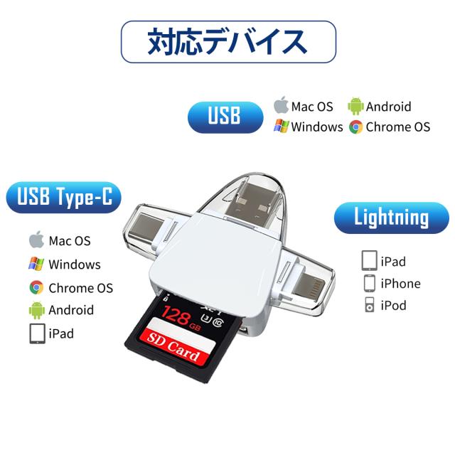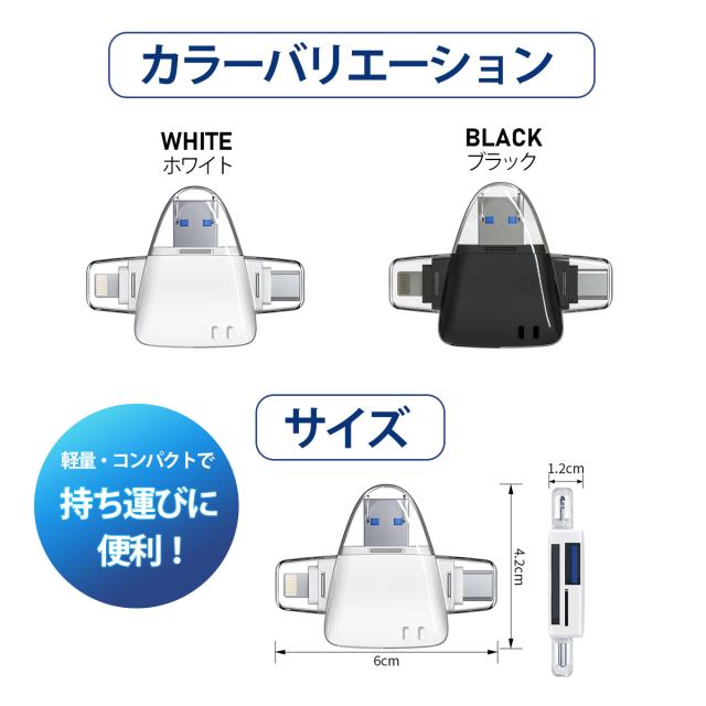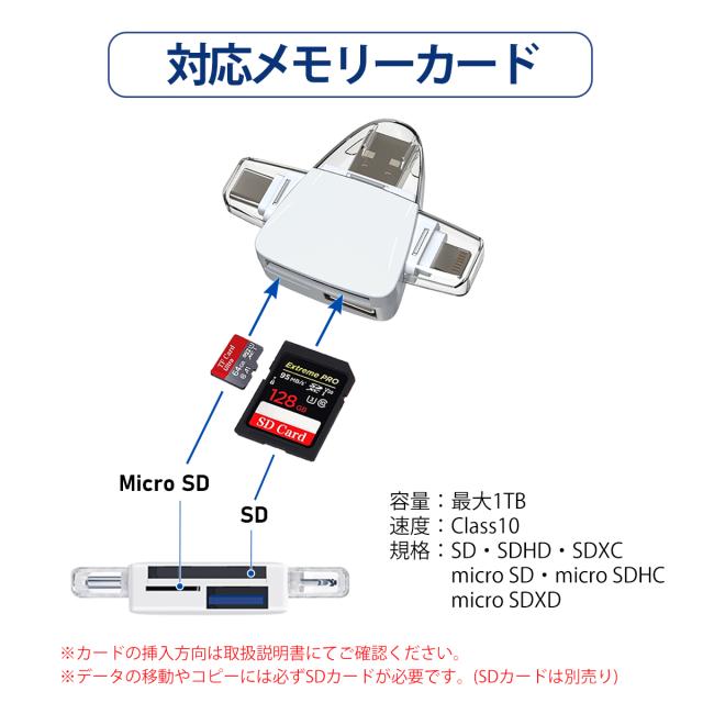 スマホ カードリーダー 1TB対応 SDカードリーダー iPhone バックアップ USBメモリ 写真 保存 データ スマホ マイクロSDカードリーダー SDカードカメラリーダー