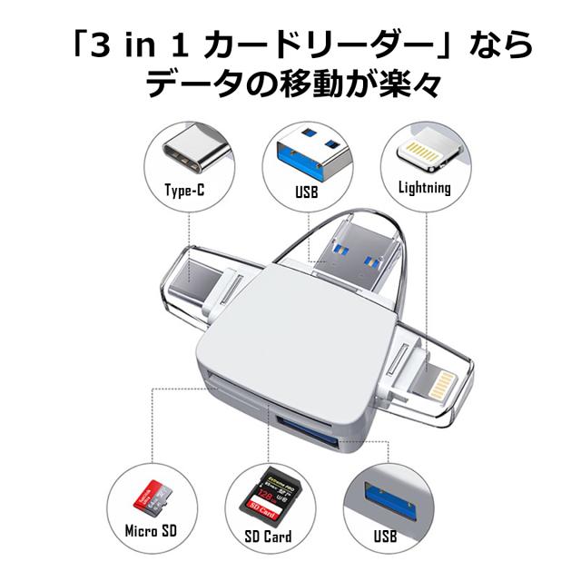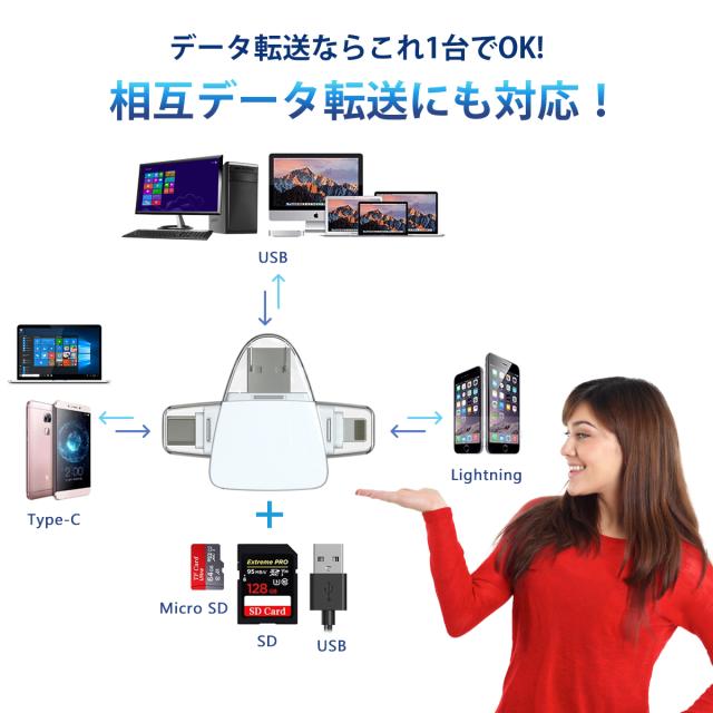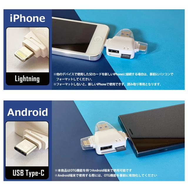 スマホに溜まった写真の整理に! SDカードリーダー iPhone カードリーダー バックアップ USB USBメモリ 写真 データ スマホ マイクロSDカードリーダー