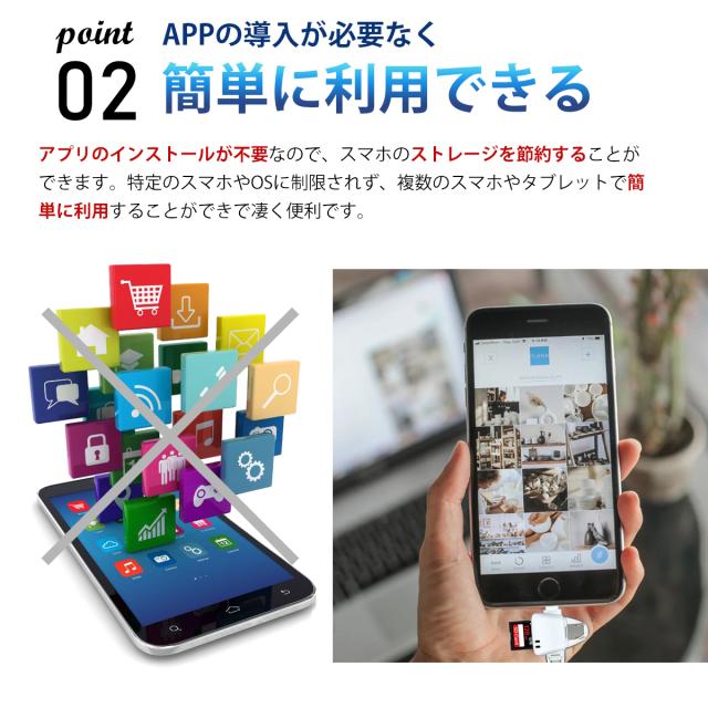 スマホ SDカードリーダーによりスマホの容量不足、ストレージ対策に