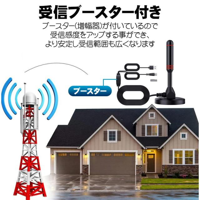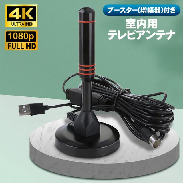 室内アンテナ 4K FullHD1080p対応 地上デジタル 地デジ ワンセグ フルセグ対応 室内テレビアンテナ 屋内アンテナ ブースター内蔵 増幅器付き マグネット式 磁気吸着 USB充電 受信範囲120km USB給電 F型 UHF 【送料無料】