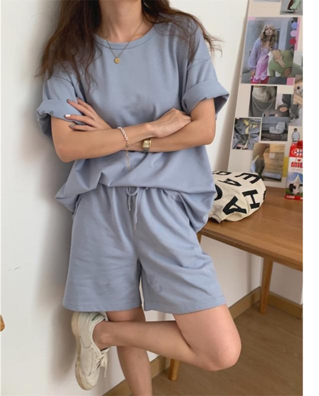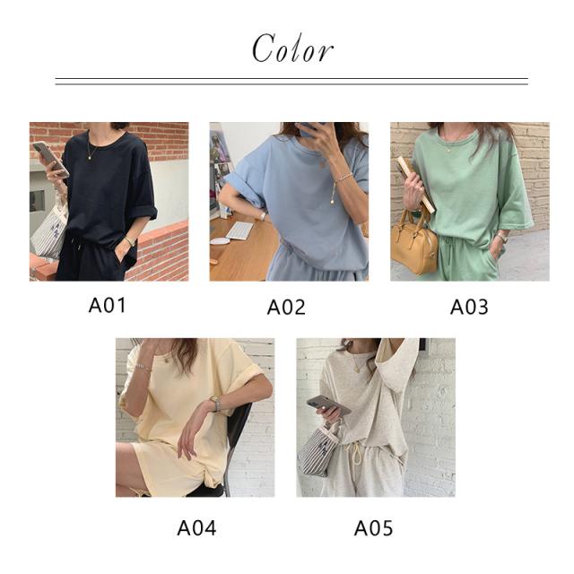 セットアップ ジャージ ルームウェア レディース 夏 半袖 Tシャツ ショートパンツ 上下セット 無地 ウェストゴム ゆったり 運