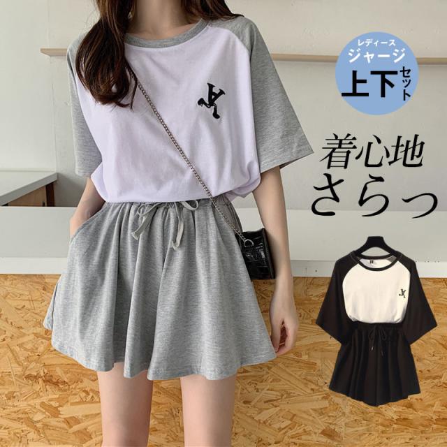 ジャージ セットアップ レディース スウェット 半袖 Tシャツ ショートパンツ ワイド 春夏 運動着 スポーツウェア ゆったり 部