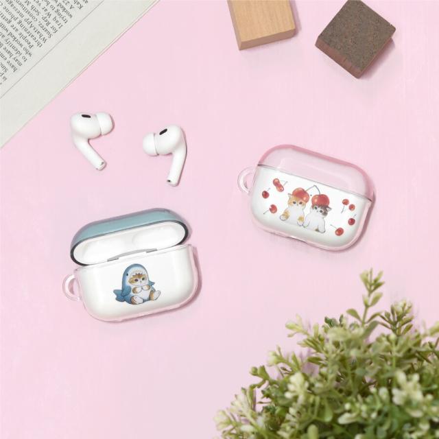 mofusand Air Pods Pro ケース サメにゃん にゃんこ 猫 ねこ さくらんぼ チェリー TPU ソフト ケース キャラクター グッズ LINE ライン スタンプ もふもふ おしゃれ かわいい エアポッズ プロ 第2世代 第1世代 対応 MOFU-01