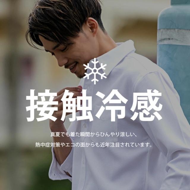 真夏でも着た瞬間からひんやり涼しい、熱中症対策やエコの面からも近年注目されている接触冷感素材を使用したシャツ。