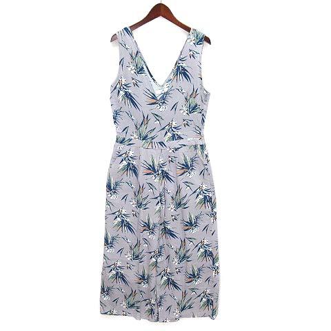 【中古】アーバンリサーチ サニーレーベル URBAN RESEARCH Sonny Label ドラセナ柄 オールインワン サロペット レーヨン リネン グレー