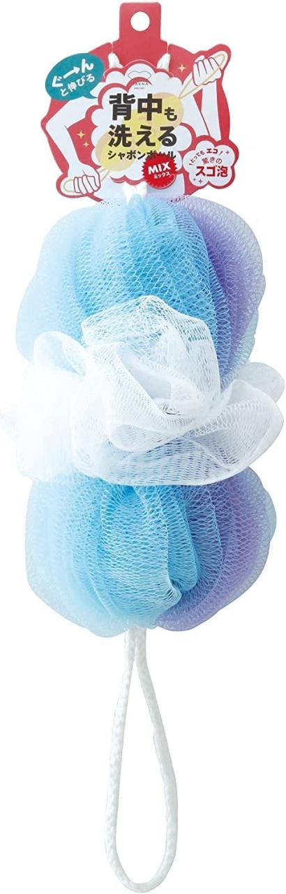 (株)マーナ 背中も洗えるシャボンボール ミックスブルー 浴用用品 体洗い用品 ボディスポンジ