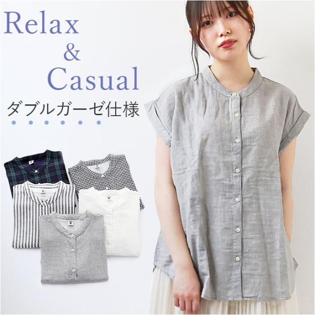 ブラウス ノースリーブ レディース 通販 シャツ レディースシャツ 普段着 部屋着 前開き 立襟 丸首 綿 ソフト カジュアル シンプル 通勤 通学 夏 トップス