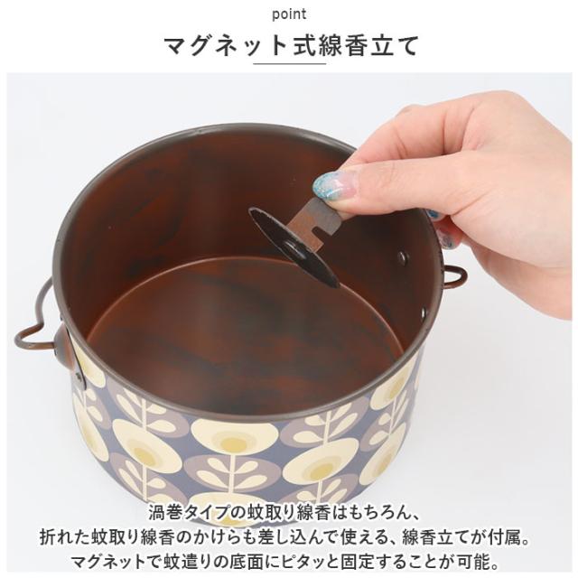 | 商品説明 | ・日本の夏の風物詩をビンテージテイストで大胆にアレンジ!レトロポップな絵柄が雰囲気抜群「アイアン蚊遣り」が新登場。 【レトロモダンなデザイン】 ・ビンテージ感のあるブリキの質感はそのままに、昔懐かしい蚊遣りをレトロポップ&トライバルなデザインでアンティーク風にアレンジ。 【丈夫で軽いブリキ素材】 ・丈夫で錆びにくく、軽量さも持ち合わせた亜鉛メッキ鋼板を使用。その無骨な素材感が、インテリアの素敵なアクセントに。 【マグネット式線香立て】 ・渦巻タイプの蚊取り線香はもちろん、折れた蚊取り線香のかけらも差し込んで使える、線香立てが付属。マグネットで蚊遣りの底面にピタッと固定することが可能。 【ヤケドを防ぐカバー付き】 ・格子状のフタで蚊取り線香を置いた蚊遣り内部をカバーできるため、お子さまやペットがいるご家庭でも安心。 【ハンドルでラクラク持ち運び】 ・ミニバケツのように持ち運びが楽にできる華奢なハンドル付きのデザインなので、お庭でのガーデニング作業や、キャンプなどのアウトドアに気軽に連れ出せる! 【夏のアウトドアイベントに】 ・花火やBBQなど、夏のアウトドアイベントが盛り上がる♪長年使い込んだようなアンティーク風の絵柄や、錆びついたようなエイジング加工が雰囲気たっぷり。 |