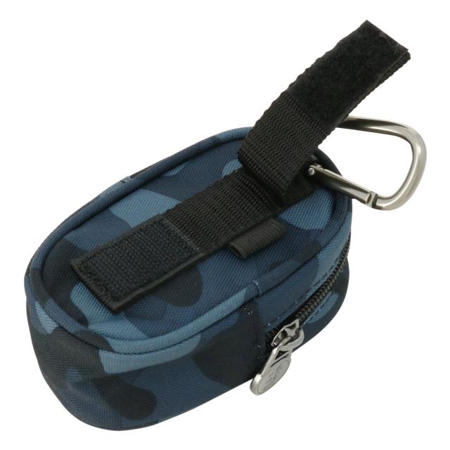 カジュアルなカモ柄を上品にまとめたファブリックボールポーチ。カラビナでの吊り下げ、ベルクロでの装着に対応しているので、お好みに合わせて付け替え可能。また、裏面にはティーを装着可能。