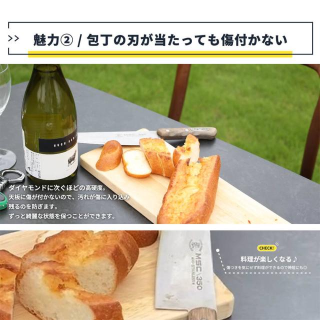 ダイヤモンドに次ぐほどの高硬度なので天板に傷が付きにくいので、ずっと綺麗な状態を保つことができます。