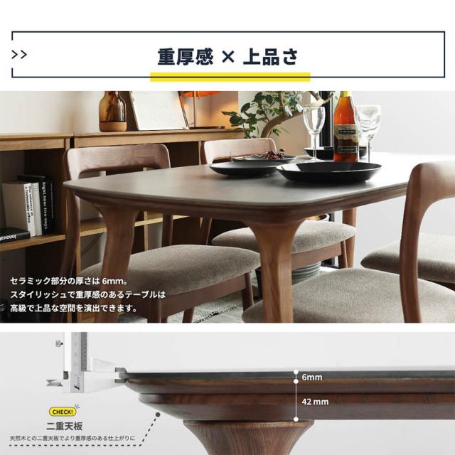 天板にセラミックを採用したスタイリッシュで重厚感のあるテーブルは高級で上品な空間を演出できます。