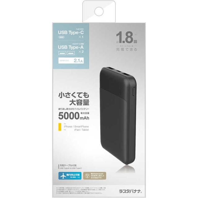 ラスタバナナ 5000mAh モバイルバッテリー A×2 C×1ポート 2.1A出力 BK ブラック RLI050C2A01BK