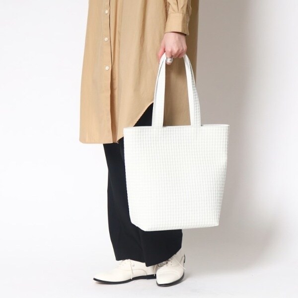 シンプルながら、型押しのニュアンスがオシャレなトートバッグ
