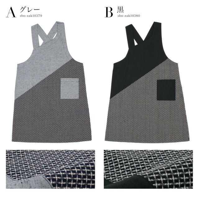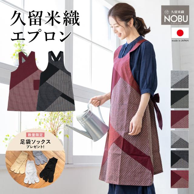 エプロン おしゃれ 久留米織 光延織物 レディース 日本製 和装 エンジ 黒 灰色 モザイク 格子 絣 通年 着物 台所 キッチン 掃除 送料無料