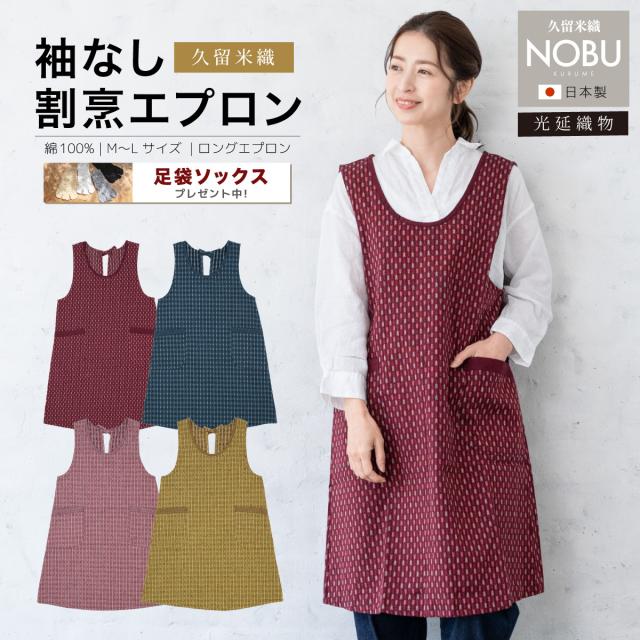 エプロン おしゃれ 久留米織 光延織物 レディース 日本製 和装 エンジ ブルー ピンク からし 矢羽根 通年 着物 台所 キッチン 掃除 送料無料