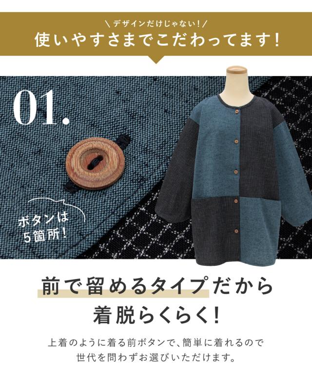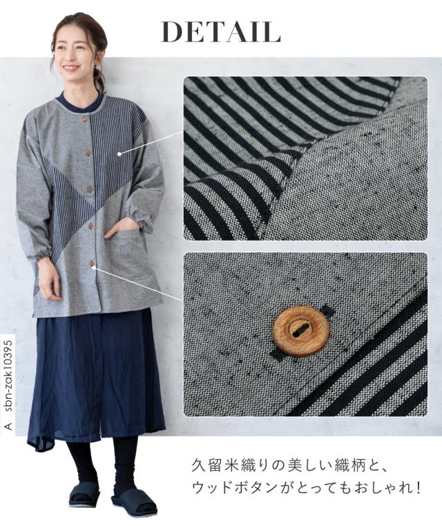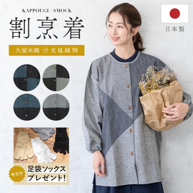 割烹着 おしゃれ かっぽう着 エプロン 久留米織 光延織物 レディース 日本製 和装 ブルー グレー ブラック ストライプ 市松 モザイク 格子 通年 着物 台所 キッチン 掃除 送料無料