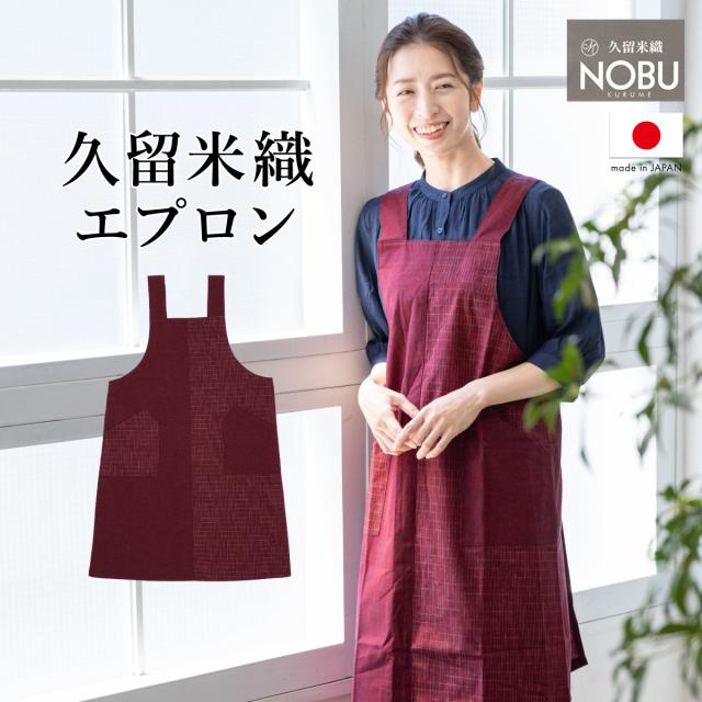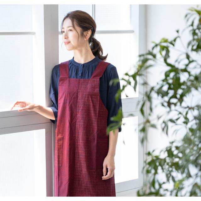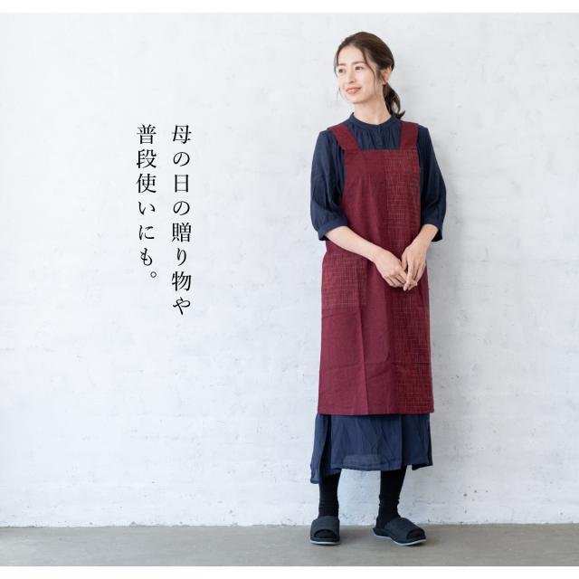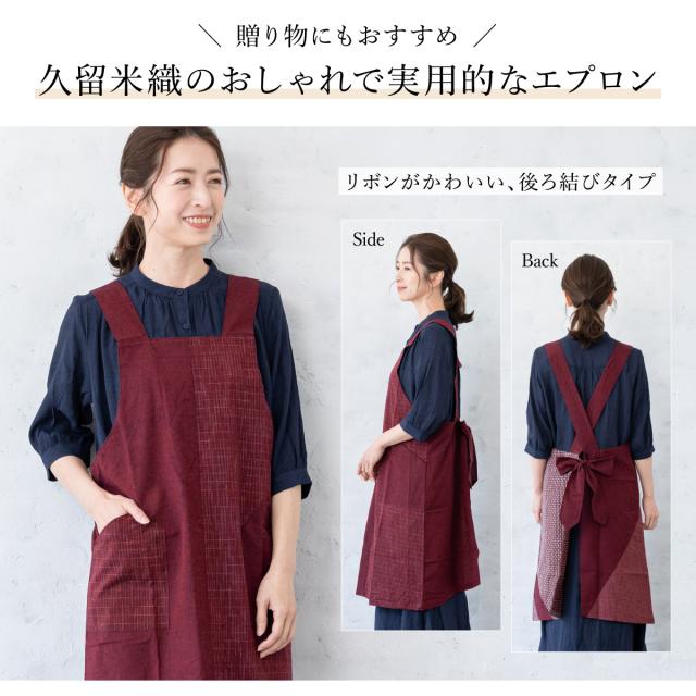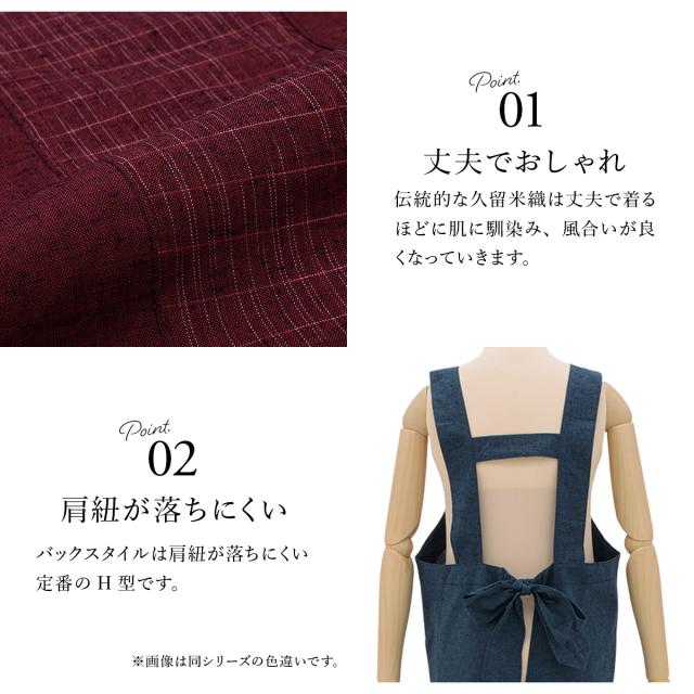 エプロン おしゃれ 久留米織 光延織物 レディース 日本製 和装 エンジ 絣 通年 着物 台所 キッチン 掃除 送料無料