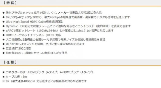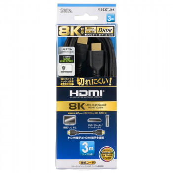 送料無料 OHM 高耐久HDMIケーブル 8Kウルトラハイスピード 3m VIS-C30TUH-K 鉛を含まない、環境にやさしい無鉛はんだを使用