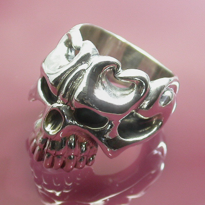 デーモンを彷彿とさせる激しい形相をした、ハードなスカルリングです。