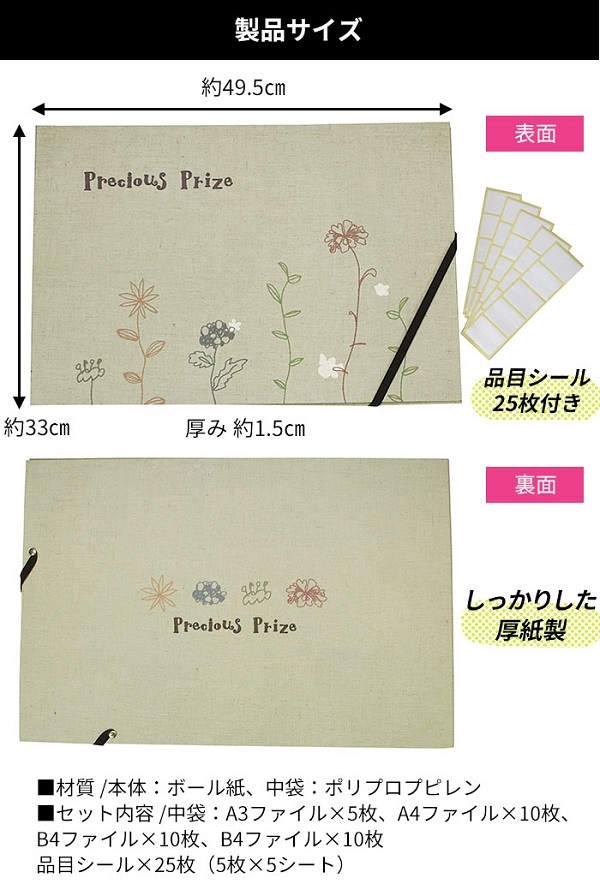 【即納】賞状・通知簿ファイル ナチュラル コジット 賞状 通知簿 絵画 習字 書道 作品 保管 収納 整理 ファイル 50枚 A4 A3 B4 ゴムベルト 進級 進学