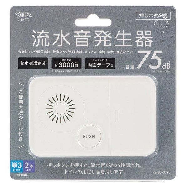 【即納】流水音発生器(約75dB/単3形×2本使用/両面テープ付属/ホワイト)OGH-TT1 トイレ オーム電機 流水 エチケット エコ 付属 両面テープ かんたんに取付