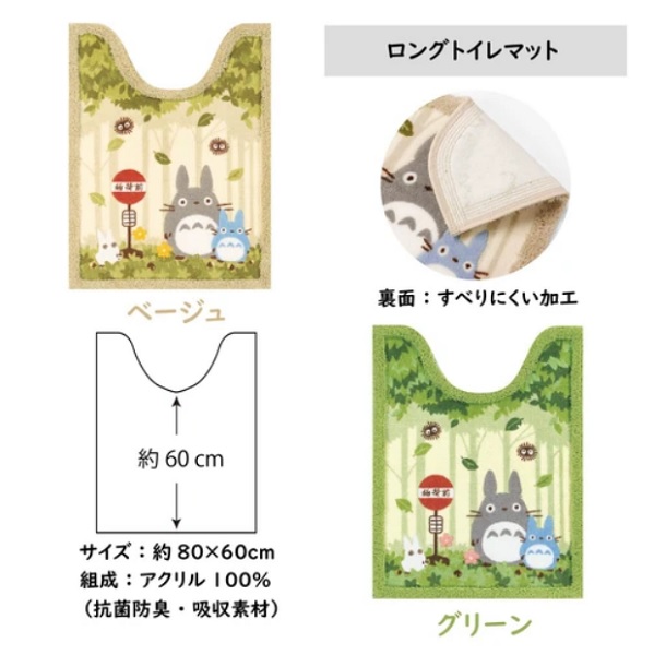 トトロの住む森の風景の様子や、映画のワンシーンが思い浮かぶジブリファンにはたまらないトイレシリーズ。 マット裏面にはすべりにくい加工。 |