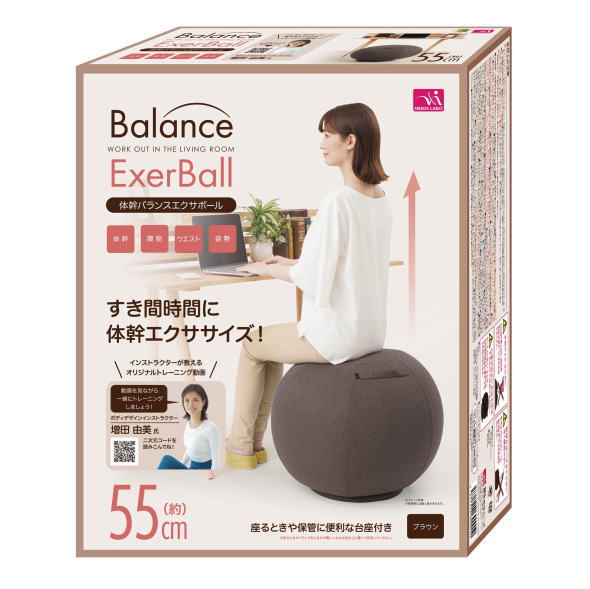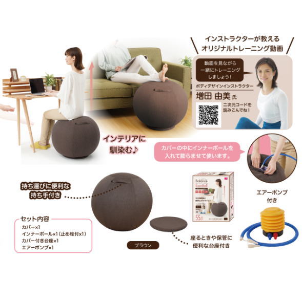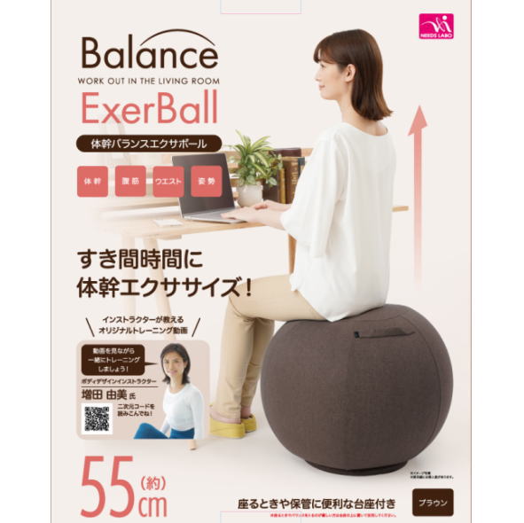 【即納】体幹バランスエクサボール ブラウン 直径55cm 耐荷重 約90kg おうちで乗るだけ エクササイズ ストレッチ ヨガ カバー付き 台座付き ニーズ