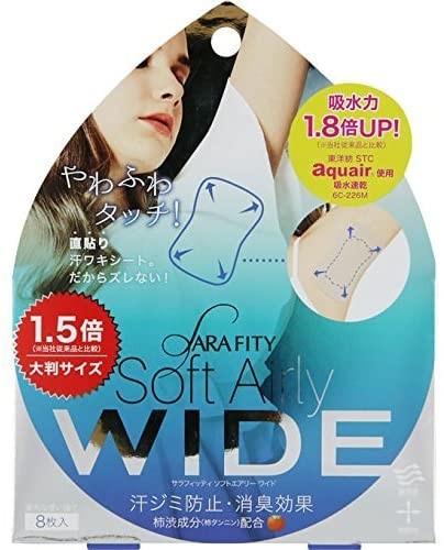 【即納】コジット サラフィッティソフトエアリーワイド 汗取り 脇 ワキ汗 夏 シール シート 幅広 ベージュ 肌色 吸水速乾 制汗 足裏 ムレ防止 消臭 伸縮 8枚