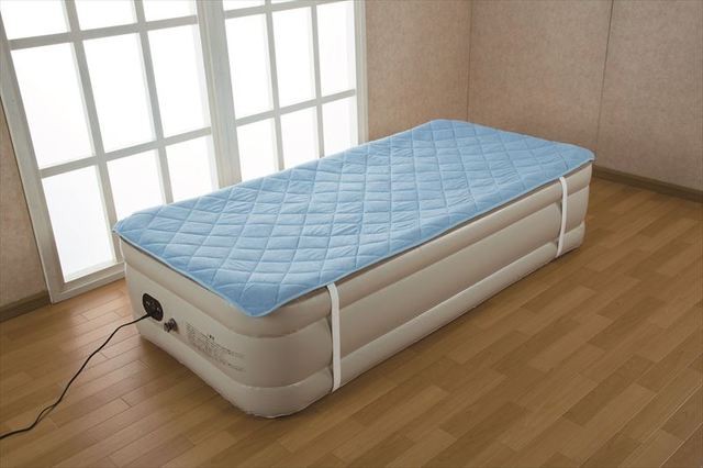 専用の固定ゴムが敷パットのずれを防ぎ、快適に使用できます。 敷パッドを敷くことにより、肌触りが快適で、エアーベッドの寝心地がさらに向上します。 |